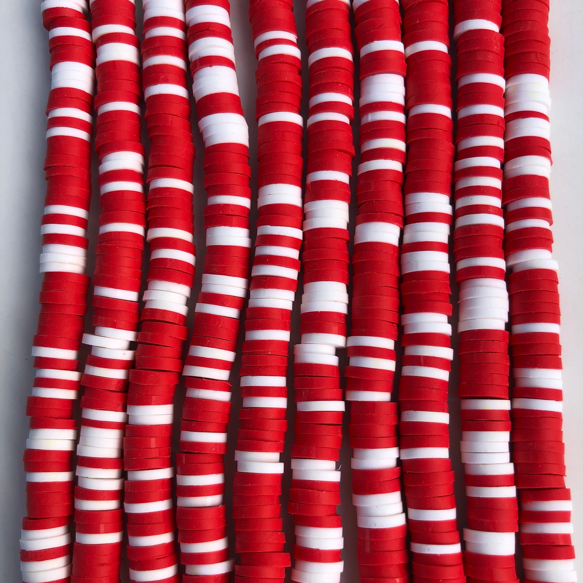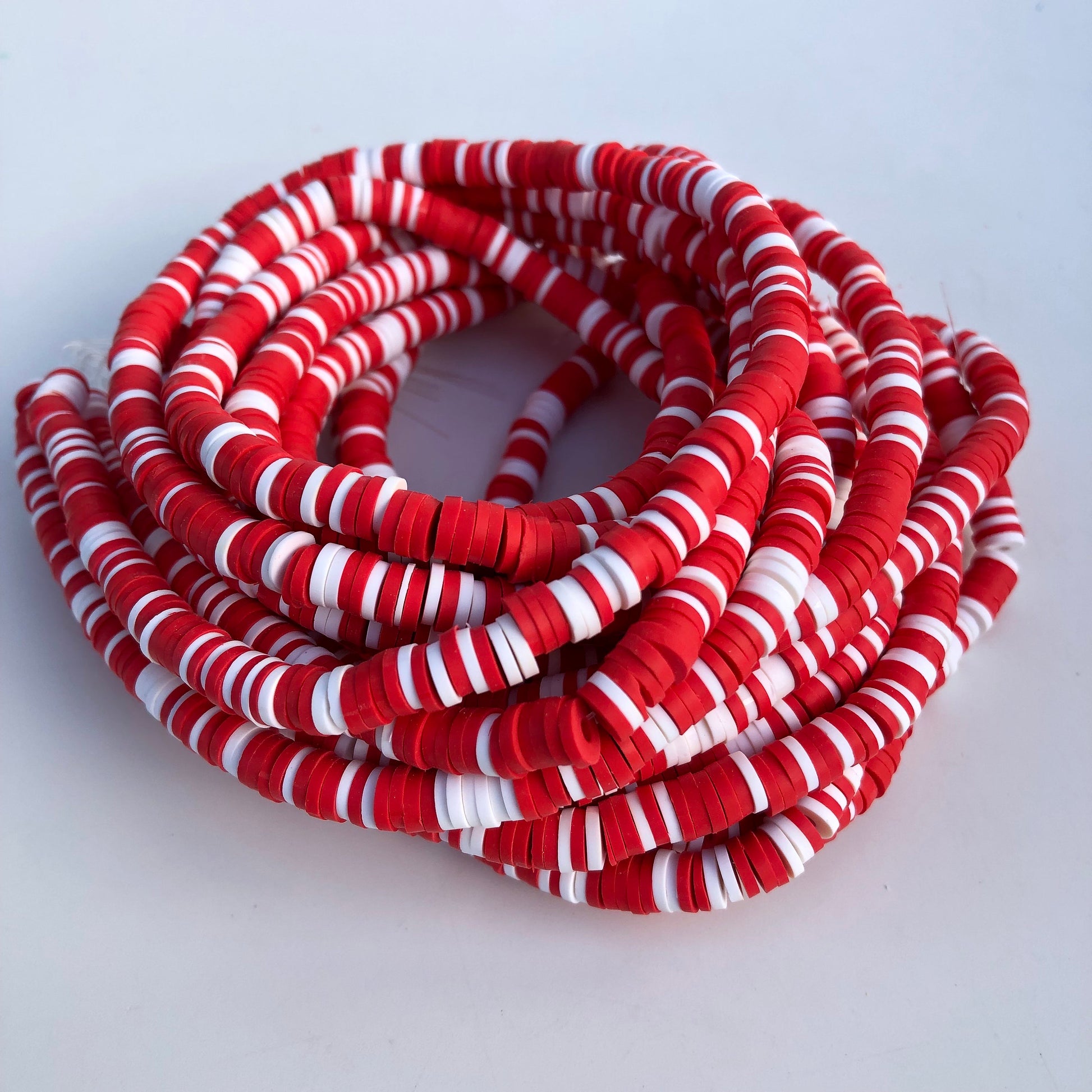 Polymer Clay Beads 6mm Red Round Donut Disc Bead White Jewellery Making Beads 40cm Strand Bead