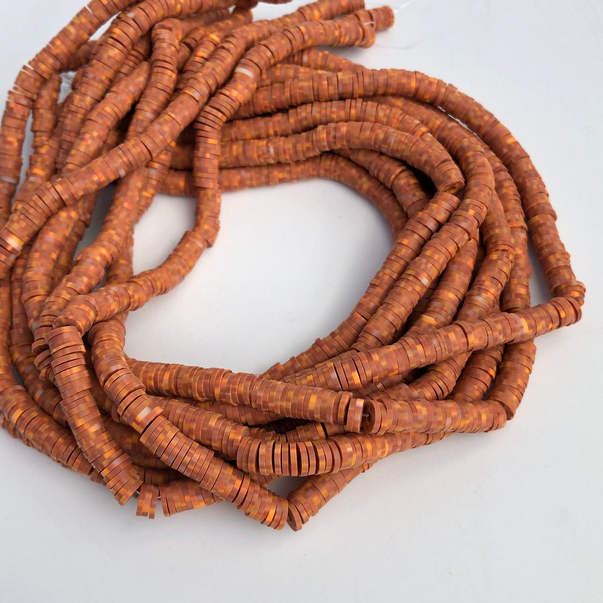 Polymer Clay Beads 6mm Tan Round Donut Disc Bead Brown Jewellery Making Beads 38cm Strand Bead