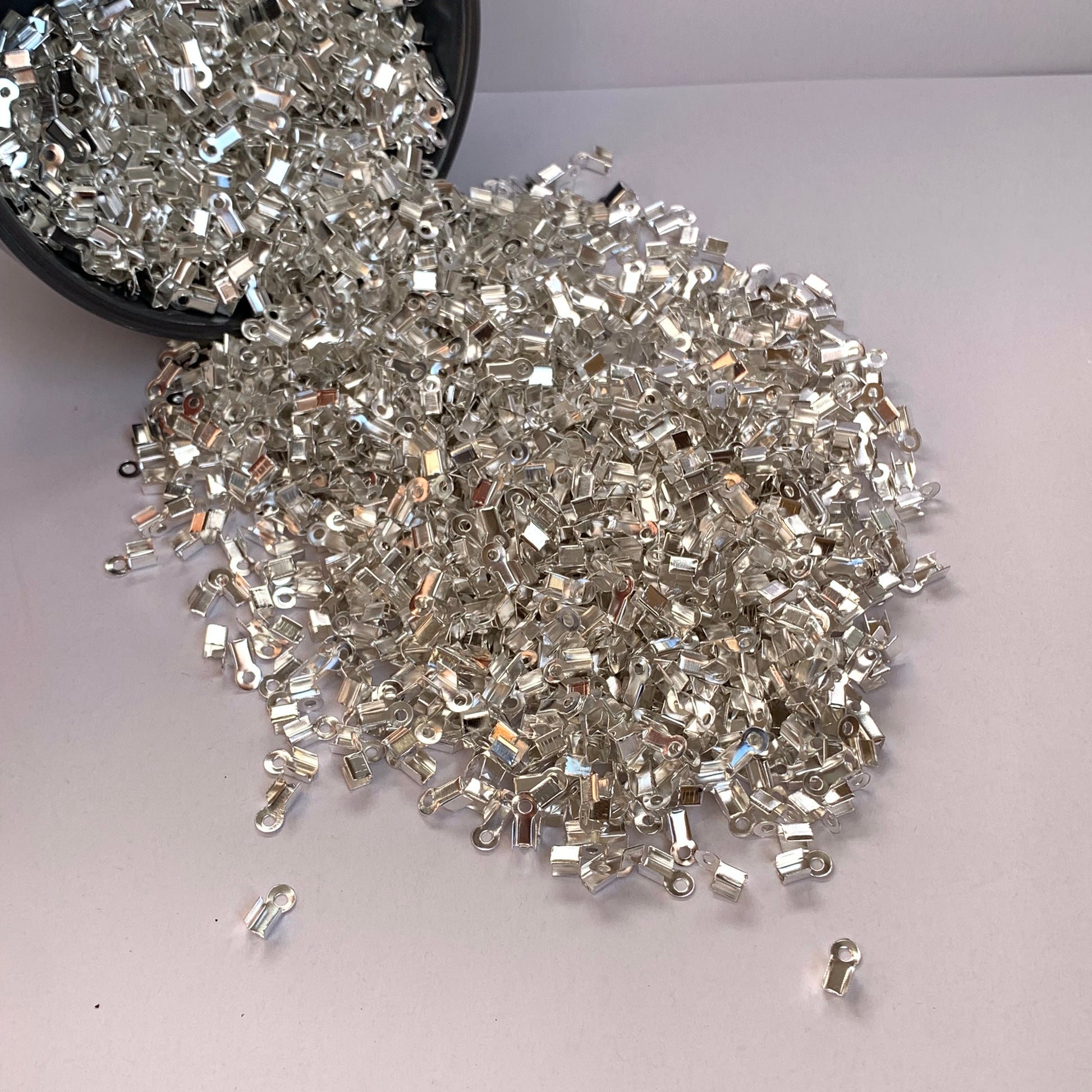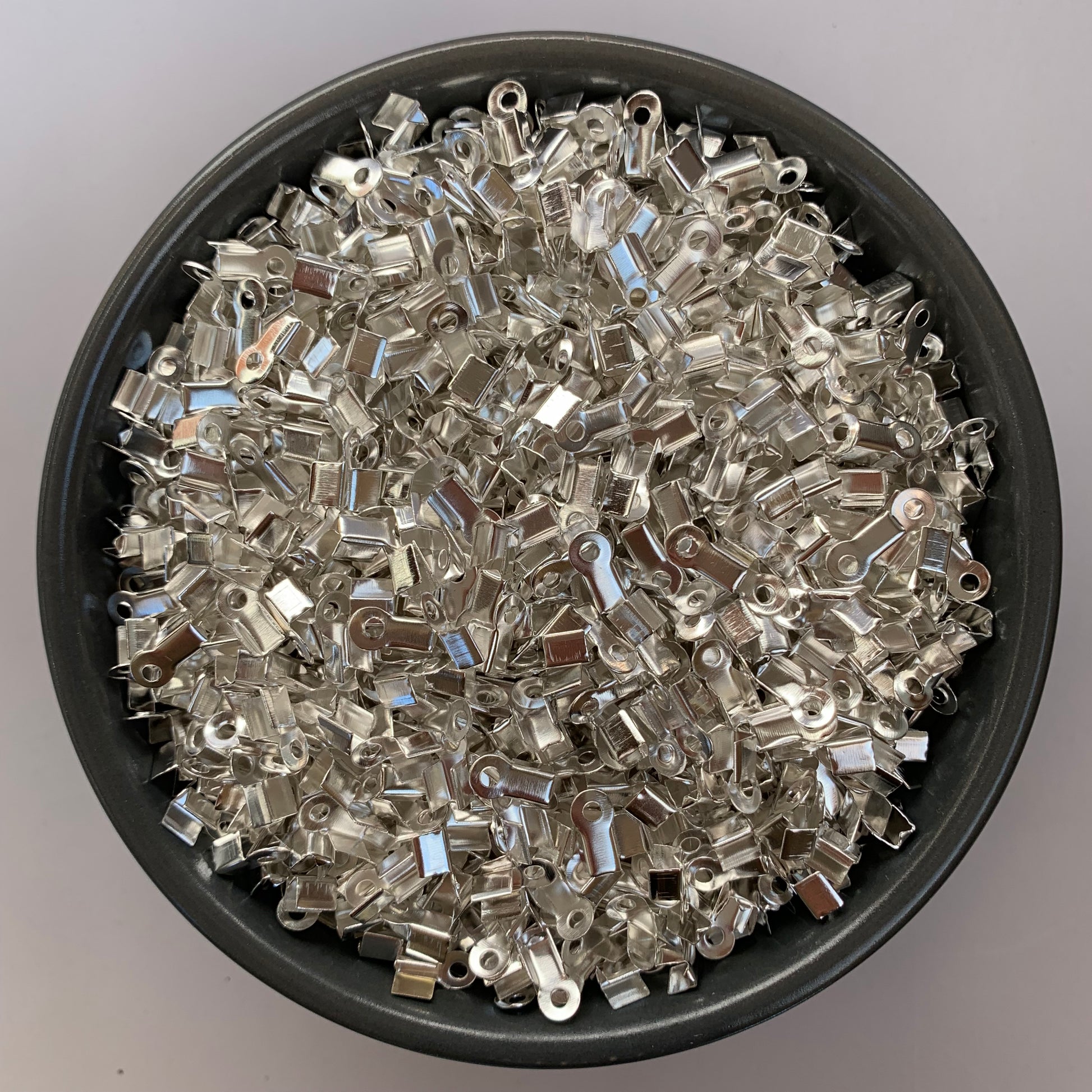 Silver Cord Ends 9mm x 4mm Flat Folding Metal End Findings 100 pieces