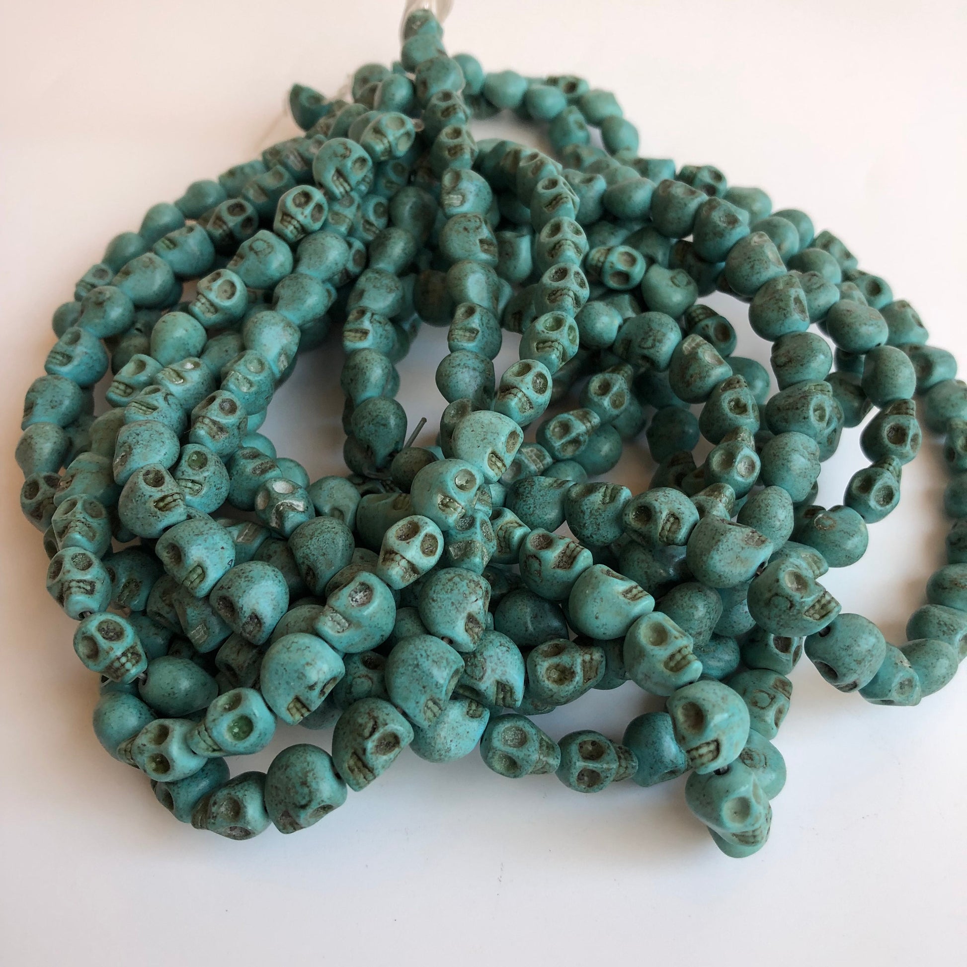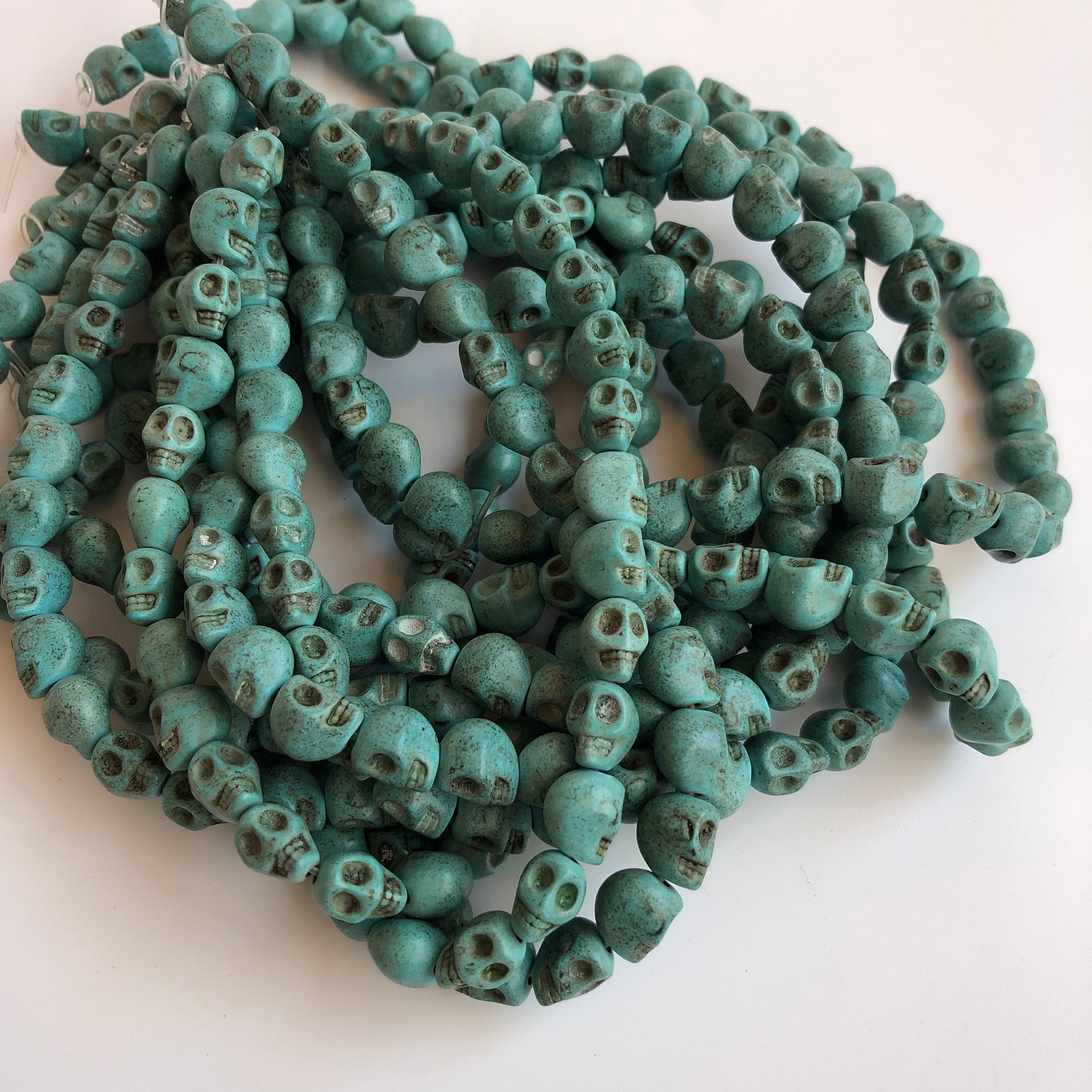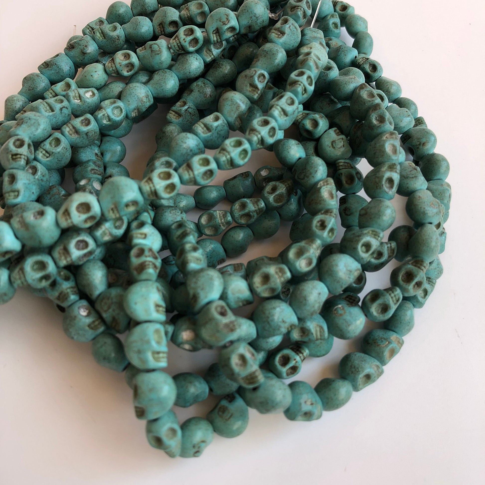 Skull Beads Blue Distressed Grunge Bead Punk Skull Bead 8mm Human Skeletal Head Halloween Craft Turquoise Jewellery Beads 50 pieces