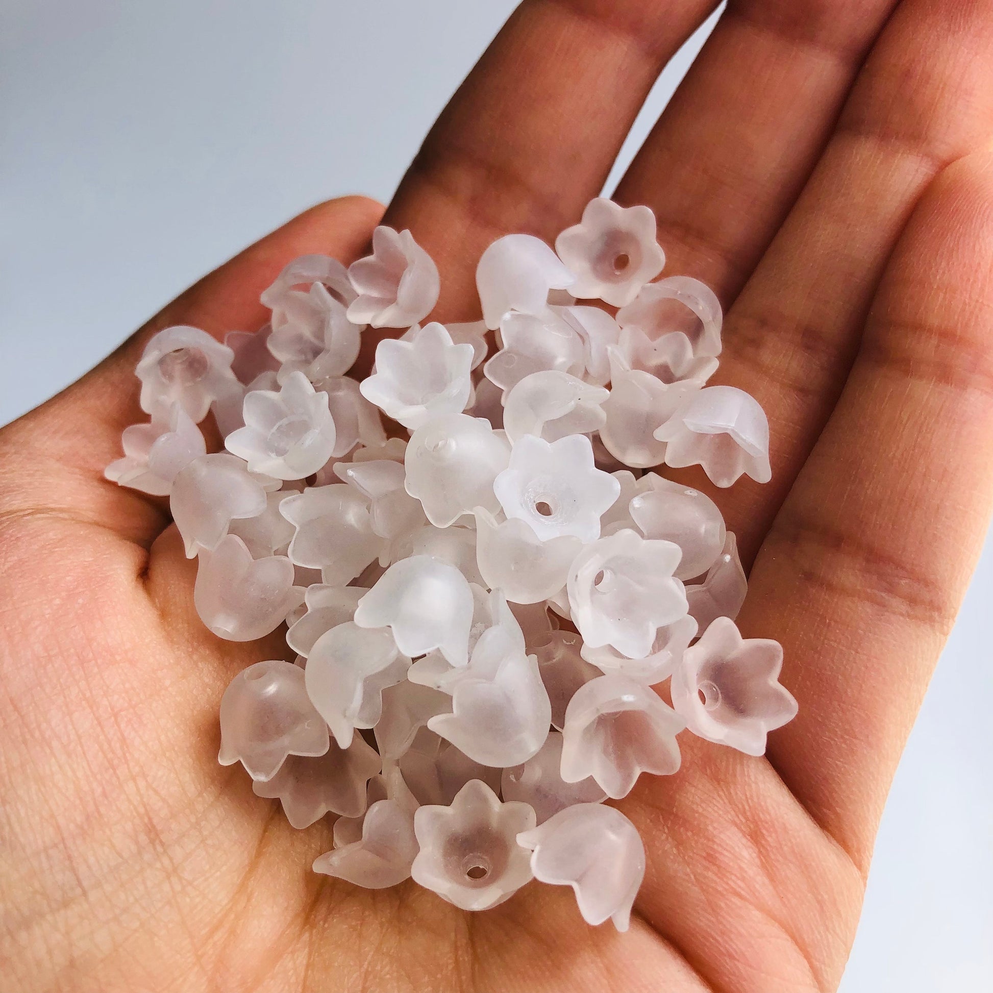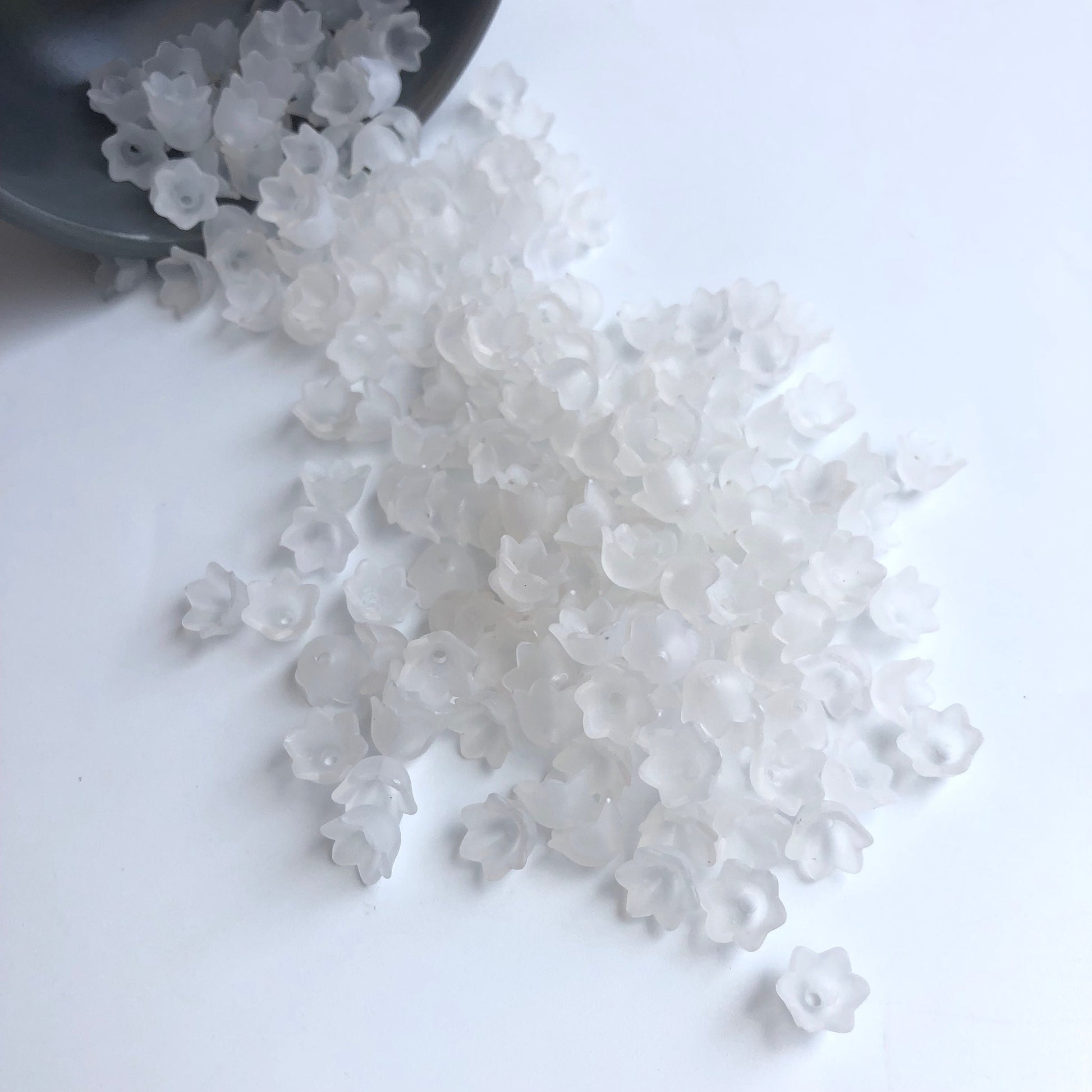 White Floral Bead Caps 10mm Jewellery Making Flower End Cap Clear Frosted Charm 50pcs